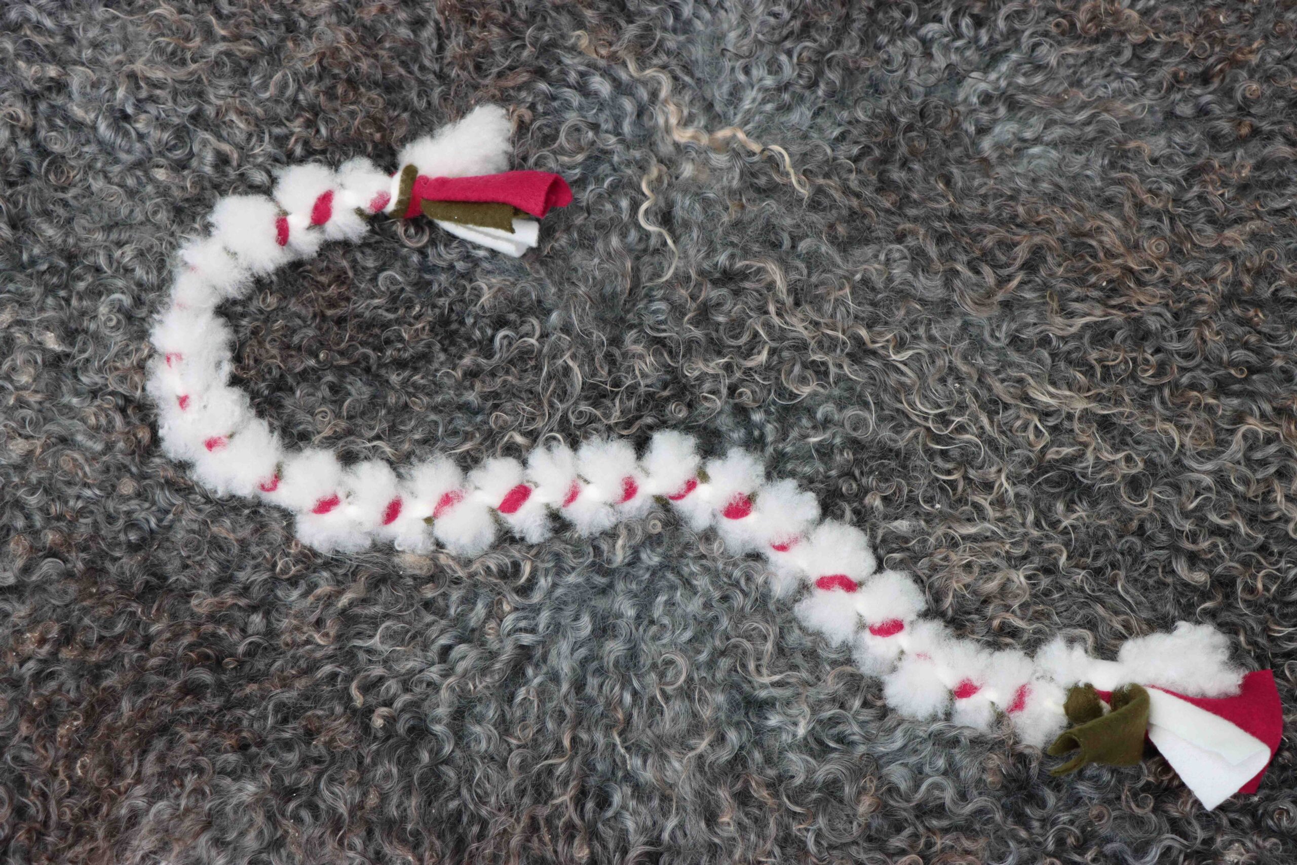 En rolig och funktionell handgjord hundleksak, skapad med omtanke och kärlek. Denna unika hundleksak är tillverkad av högkvalitativ fleece och naturlig ull, sammanflätade för att skapa en robust och mjuk leksak som din hund kommer att älska.
